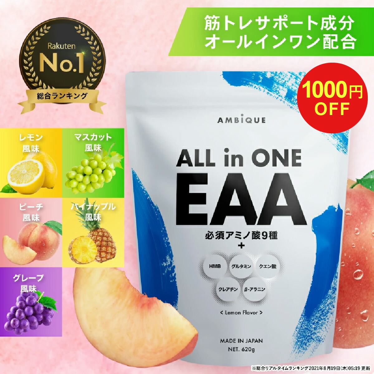 【27日1:59までクーポン利用で3,980円】【アンビーク / AMBIQUE】オールインワンEAA 620g 送料無料 国産 サプリ 筋トレ 必須アミノ酸 レモン風味 マスカット風味 BCAA HMB 脂質ゼロ 無添加 プロテイン 高配合 クレアチン グルタミン プレワークアウト トレーニング