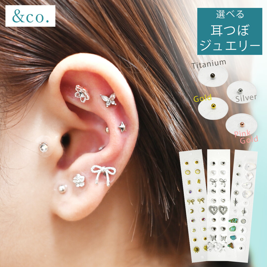 \めざましテレビで紹介されました/ &co. 耳つぼジュエリー 耳ツボジュエリー 耳つぼシール セルフ チタン 透明 100粒 ゴールド シルバー ピンクゴールド 耳つぼジュエリーキット