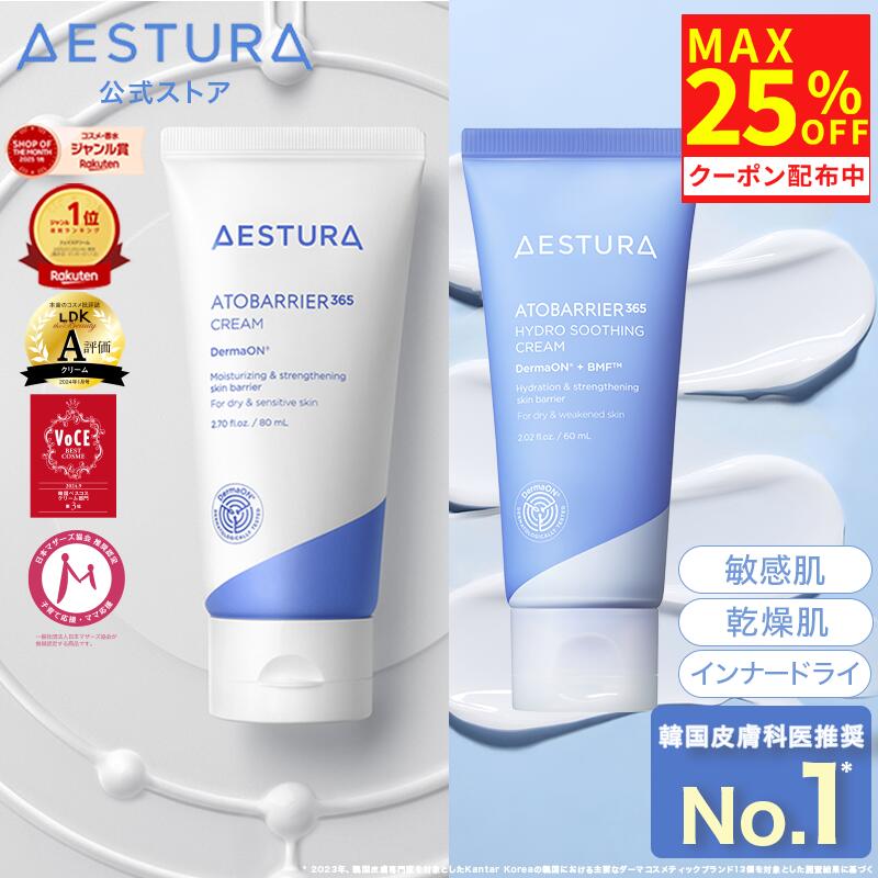![\最大25%OFF&先着サンプルプレゼント/日本未発売パック付きセット登場★[楽天1位]【公式】アトバリア 365 クリーム ハイドロクリーム 保湿 保湿クリーム フェイスクリーム 顔 メンズ 化粧品 セラミド アトピー チューブ 乳液 敏感肌 乾燥肌 スキンケア ダーマコスメ](https://tshop.r10s.jp/aestura-japan/cabinet/ev/202510koreanfes/imgrc0115269912.jpg)