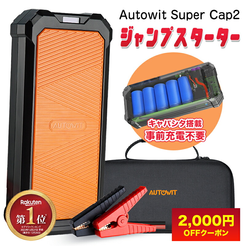 2000円OFFクーポン Autowit Super Cap2 ジャンプスターター 12V スーパーコンデンサ搭載 リチウムバッテリー無し キャパシタタイプ 事前充電不要 高安全性 急速充放電 7.0Lガソリン車・4.0Lディーゼル車対応 エンジンスターター 収納ケース付 1年保証
