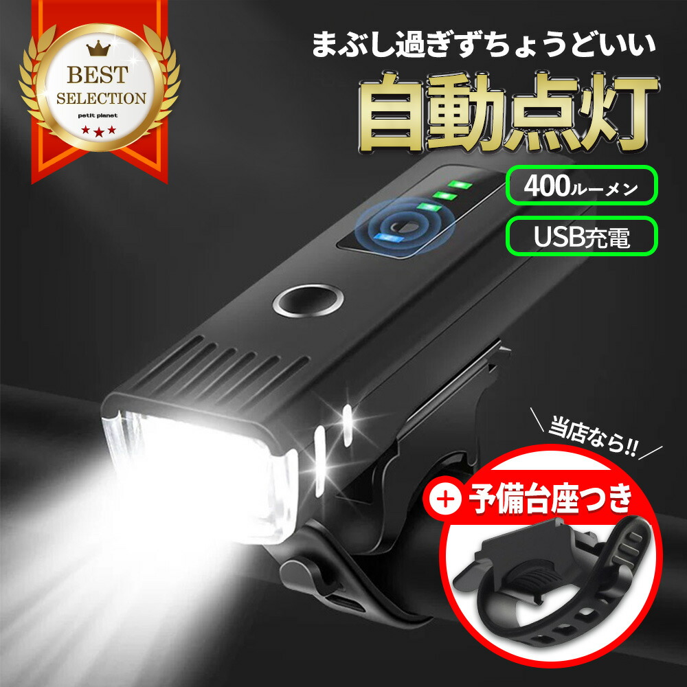【送料無料】【連続1位獲得】自転車ライト 【送料無料】 USB 充電式 防水 強力 最強 オート 明るい 自動点灯 led フロント 自動 オートライト センサーライト 後付け 簡単 小型 長時間 ロードバイク クロスバイク 街乗り 子供 通学 通勤 軽い 小型