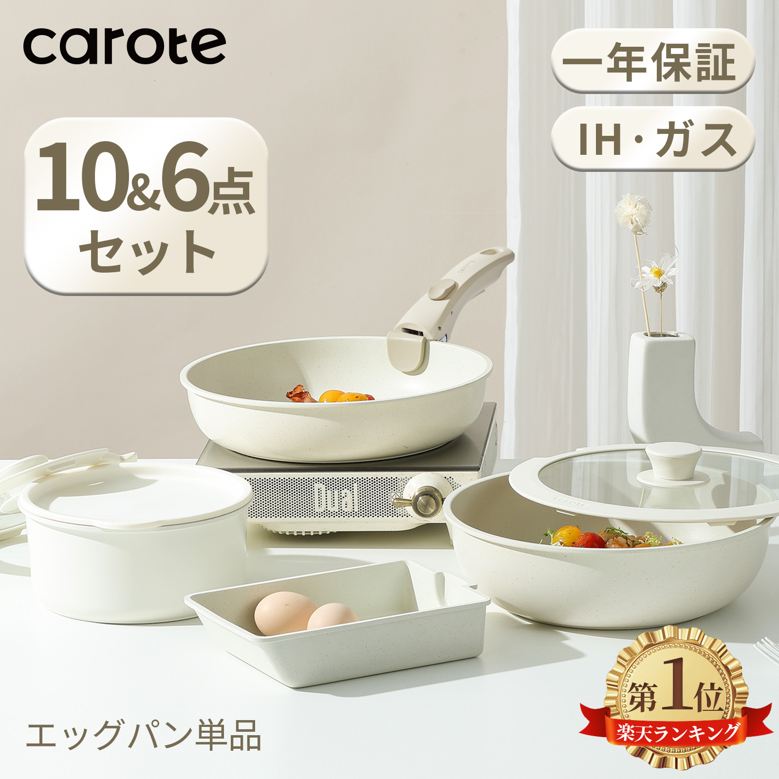 【今なら!10点が6580円!】CAROTE カローテ フライパン セット 10点・6点 IH&ガス火対応 PFOA PFOS フリー 鍋セット 取っ手取れる 卵焼き フライパン 片手鍋18cm フライパン 26cm 炒め鍋 マーブルコート 一年保証 ベージュ Ice (10点・6点・エッグパン単品)