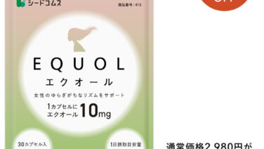 シードコムスのエクオールサプリを徹底レビュー!1日1粒で高純度10mgを摂取でき、美容成分も贅沢配合。更年期のゆらぎや美容の悩みに寄り添います。9/25までの限定クーポン情報もご紹介!