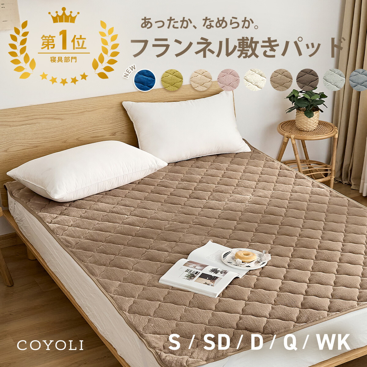 【BF限定 クーポンで20%OFF】【楽天1位】 敷きパッド シングル セミダブル ダブル クイーン ワイドキング フランネル マイクロファイバー あったか 冬用 洗濯機OK くすみカラー ホワイト ブラウン グレー ベージュ 13549 敷きパッドならCOYOLI