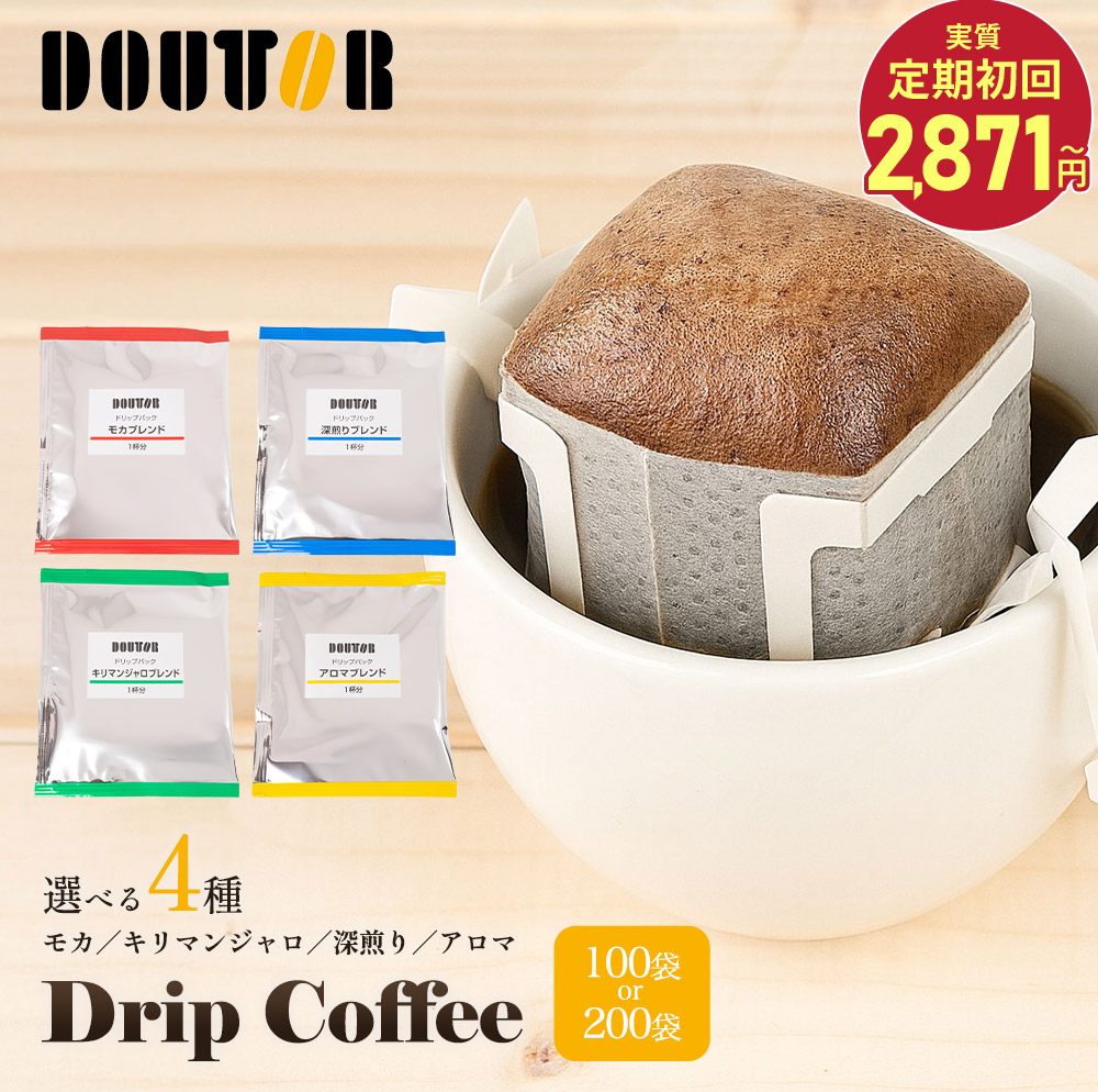 【最大600円OFF!】 ドトールコーヒー 4種類から選べる ドリップパック100袋 200袋 ドトール コーヒー 珈琲 ドリップコーヒー 定期購入 定期 アロマ まろやか 深煎り モカ キリマンジャロ ブレンド ドリップバック 深煎り ブラックコーヒー 飲み比べ 送料無料