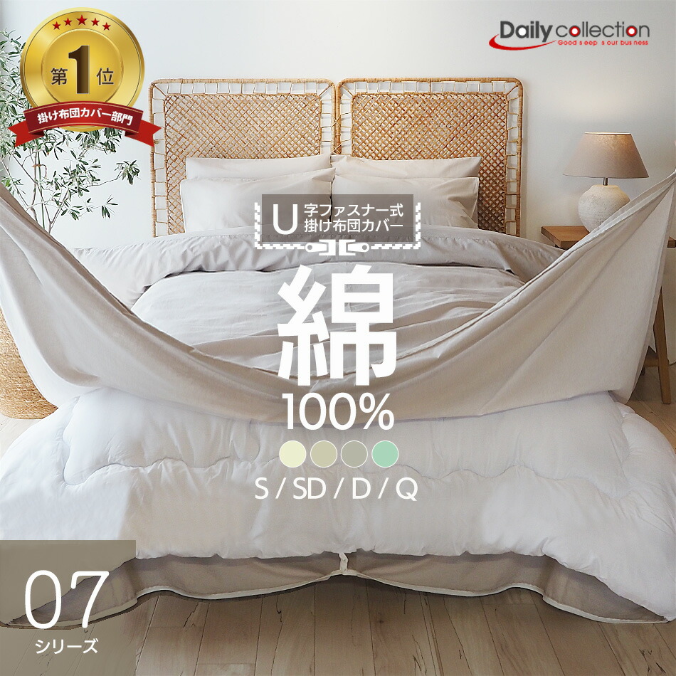 交換が楽しくなる 掛け布団カバー 綿100% コットンケットにもなる 肌掛け布団カバー 布団カバー U07 デイリーコレクション 07シリーズ 【シングル】【セミダブル】【ダブル】【クイーン】U字ファスナーキナリ グレー ベージュ グリーン