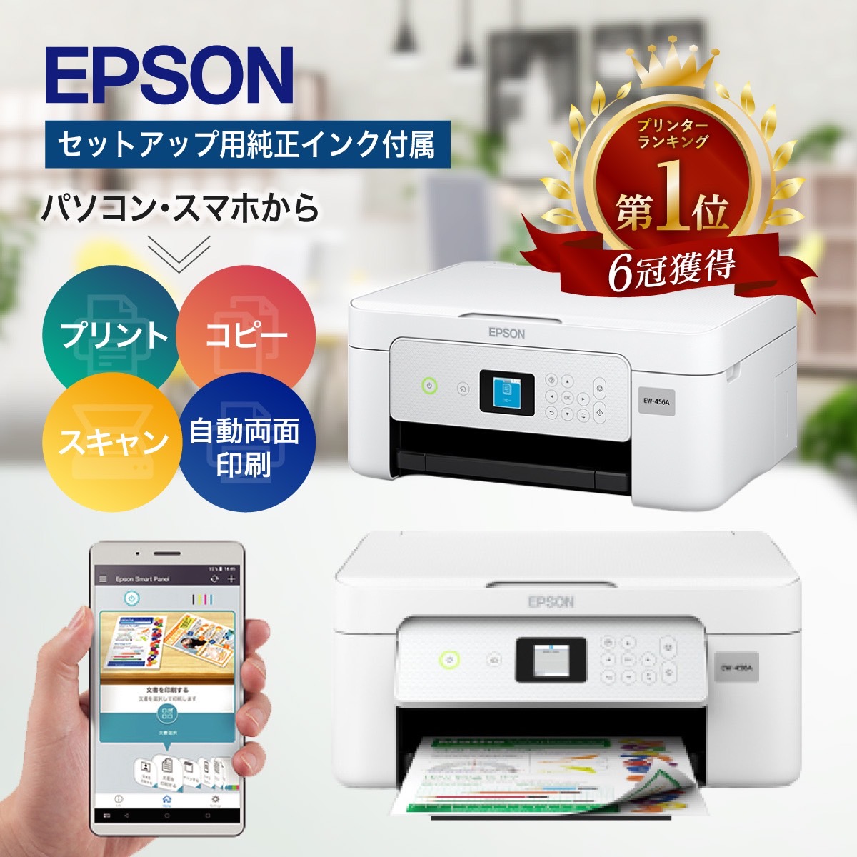 \高評価★4.58!楽天ランキング1位受賞/【即納】 プリンター エプソン プリンター 複合機 コピー機 セットアップ用純正インク付属 印刷 コピー スキャン 自動両面印刷 スマホでプリント Wi-Fi接続 簡単設定 epson プリンター 家庭用 コピー機 プリンタ EW456A