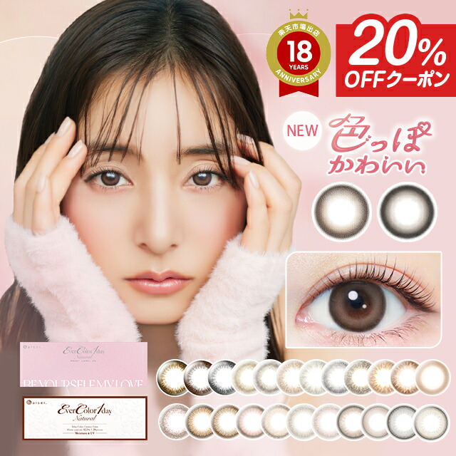 【20%OFFクーポン】 新色登場 カラコン ワンデー エバーカラーワンデーナチュラル モイストレーベルUV (1箱20枚入) エバーカラー 【送料無料】【メール(ポスト投函)便選択で1配送につきパック1枚】 度あり 水光 グレー カラーコンタクト コンタクトレンズ ∀