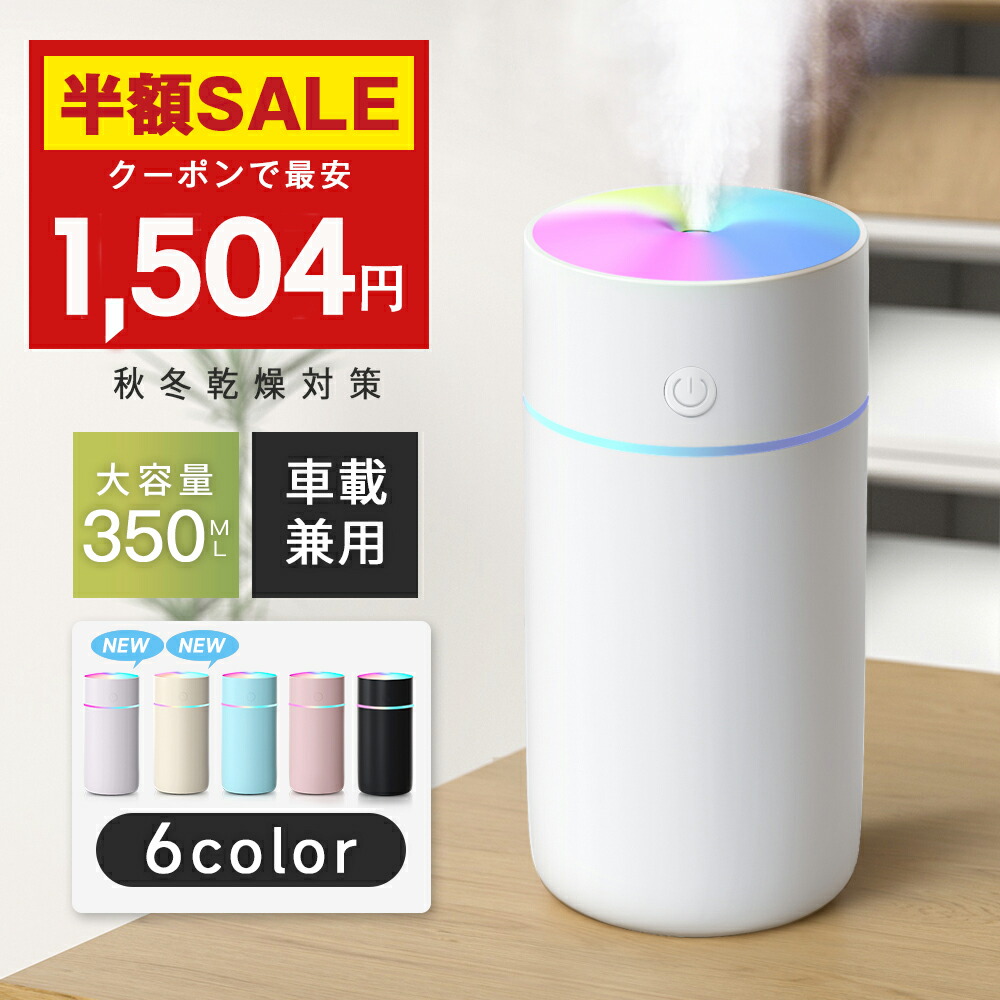 「クーポンで最安1,504円」「楽天1位!」加湿器 卓上 超音波 七色LED 次亜塩素酸水対応 350ml 大容量 2種類加湿モード 空焚き防止 水漏れ防止 静音 保湿 車載 コードレス USB給電式 充電式 ミニ 乾燥/花粉症対策 車用 寝室 家庭 子供部屋 お手入れ簡単 オフィス 2025