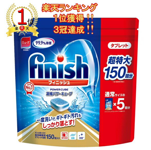ランキング1位!3冠達成!【送料無料】finish ビッグパック 大容量 150個入り フィニッシュ タブレット 食洗機用洗剤 パワーキューブ ビッグパック 食器洗い機用洗剤 キッチン用洗剤 食洗機用洗剤 食器洗浄機用 洗剤 食器洗い機用 5g × 150粒 750g 台所用合成洗剤