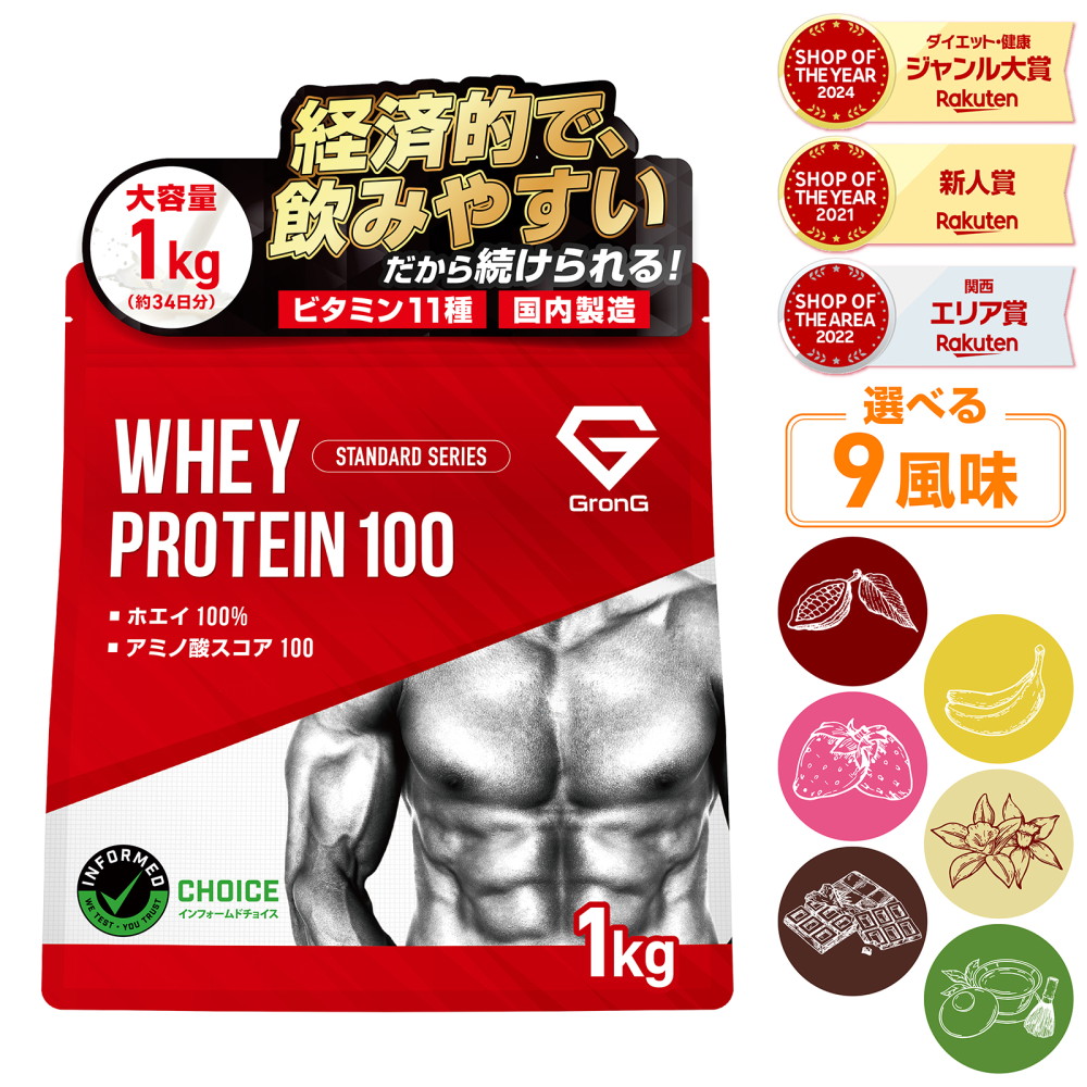 【4日20時~はポイント5倍&500円クーポン/条件有】グロング プロテイン ホエイプロテイン 1kg スタンダード 風味付き ビタミン11種配合 GronG 置き換え ダイエット タンパク質 サプリメント アミノ酸スコア100 美味しい 送料無料 ポイント