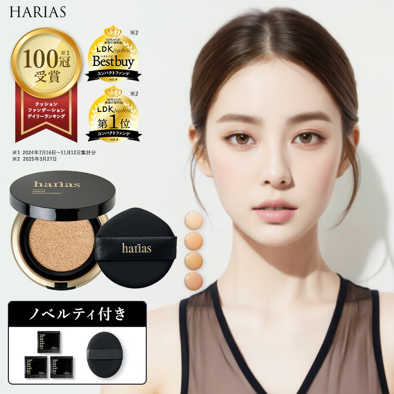 【最大30%OFF&ノベルティ付き】 HARIAS ハリアス 公式 クッションファンデ クッションコンパクト ファンデーション ツヤ肌 カバー力 高濃度フラバンジェノール 日本製 国産 UV 紫外線 美白 保湿 シワ 改善 美容 毛穴 ナイアシンアミド ウォータープルーフ 崩れにくい