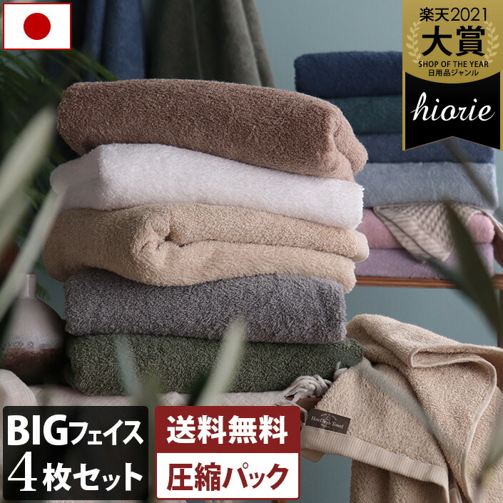 【3916円→3500円】 日本製 ホテルスタイルタオル ビッグフェイスタオル 4枚同色セット 【圧縮】 楽天1位受賞 / 約40×100cm タオル フェイスタオル 小さめ バスタオル 厚手 セット SALE バーゲン 送料無料