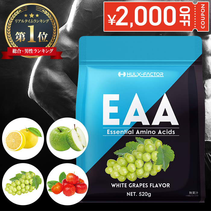 【2,000円クーポンあり】 ハルクファクター EAA サプリ 必須アミノ酸 BCAA ベータアラニン マルトデキストリン クエン酸 グレープフルーツ 白ぶどう アセロラ 青りんご トレーニング 筋トレ ダイエット 520g 国産