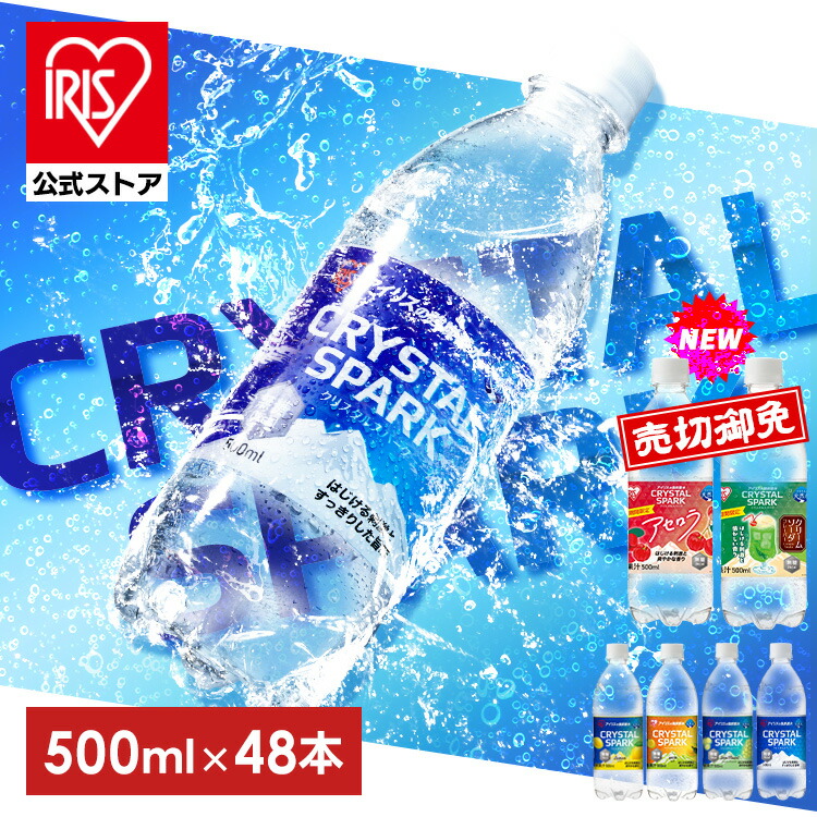 【公式】炭酸水 500ml 48本 (24本入×2箱) 強炭酸水 アイリスオーヤマ クリスタルスパーク 炭酸 アセロラ クリームソーダ レモン シャインマスカット ゆず フレーバー プレーン 無糖 天然水 アイリスフーズ ペットボトル *