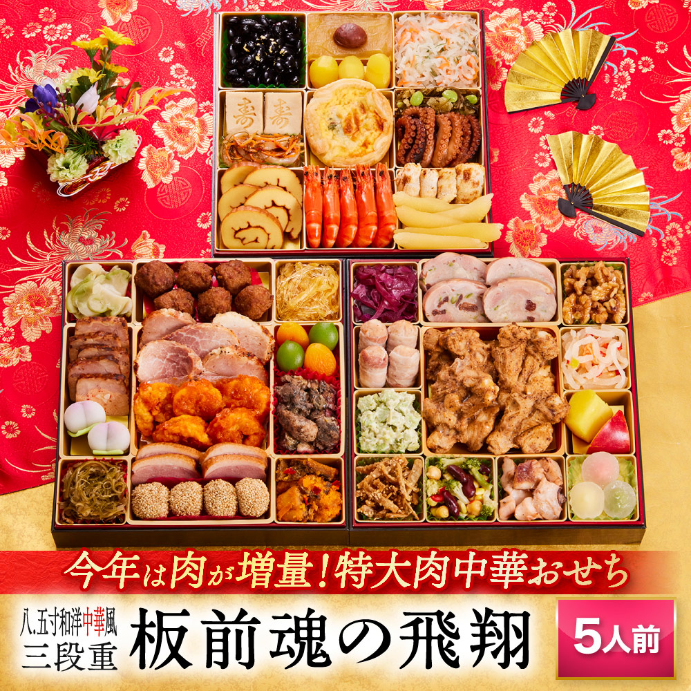 【エントリーでポイント10倍★BLACKFRIDAY】おせち 早割 2026 予約『板前魂の飛翔』おせち 8.5寸 特大 和洋中 和風 洋風 中華風 中華 肉中華 3段重[40品 5人前 お節]新春 豪華 毎年完売の おせち料理[中華おせち 送料無料]2025 お正月 御節料理 冷凍 年内配送可能