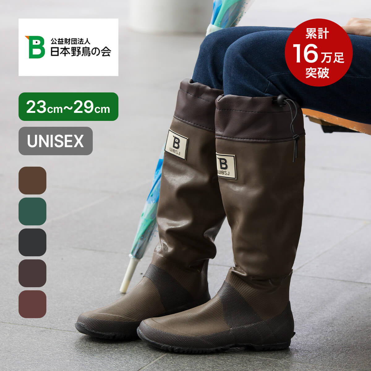日本野鳥の会 バードウォッチング長靴 メンズ レディース 雨靴 野鳥の会 レインブーツ 収納袋付き 完全防水 軽量 収納 折り畳み 滑りにくい ロング WBSJ 大雨 園芸 田植え 農作業 作業用 釣り 野外 ガーデニング フェス キャンプ アウトドア