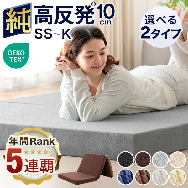 【正午~クーポン5%引】 【“5年連続”インテ寝具総合1位】確かな品質 「純」 高反発(R) マットレス エコテックス 10cm厚 3つ折り メッシュ/パイル 折りたたみ ベッドマットレス 10cm セミシングル シングル セミダブル ダブル 三つ折り 高反発 高反発マットレス 敷布団