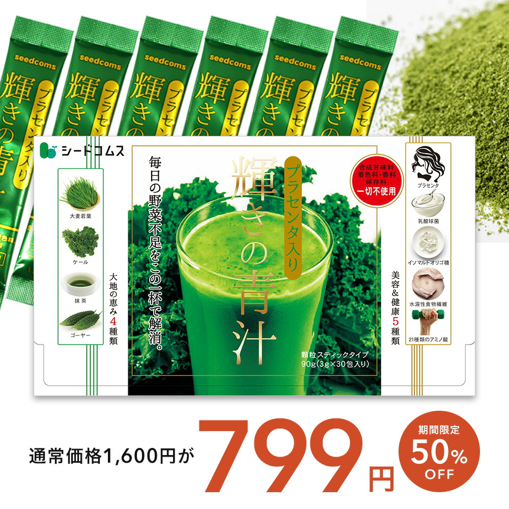 【10/1 10:00開始★クーポンで799円】輝きの青汁プラセンタ 入り 3g×30包入り 送料無料 ダイエット サプリメント 大麦若葉 抹茶 乳酸菌 食物繊維 ビタミンC カルシウム だけでなく 青汁プラセンタ