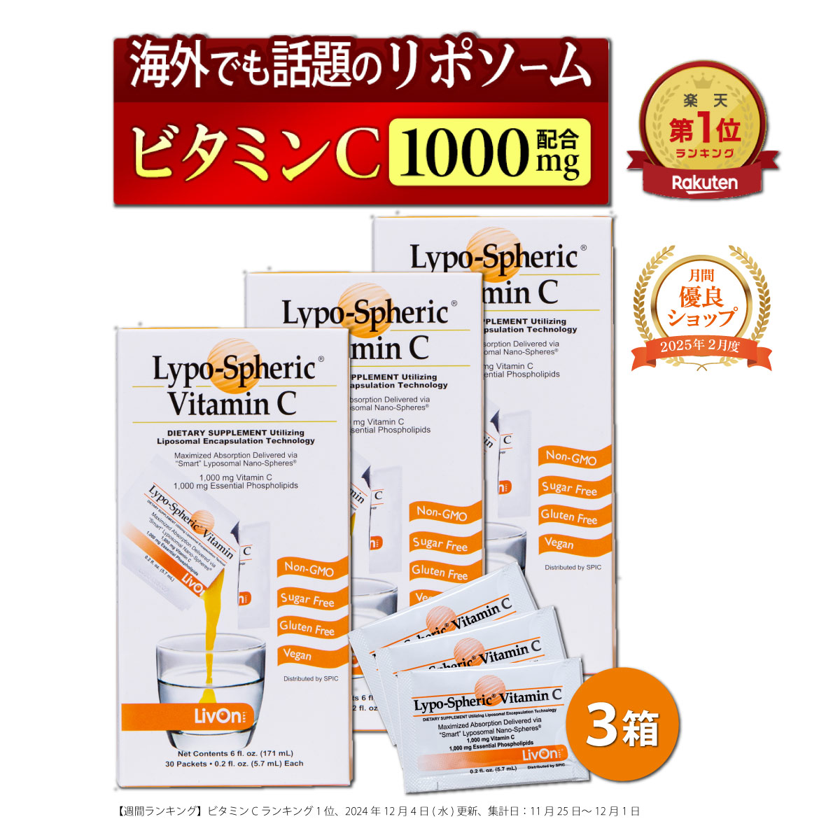 【公式通販:安心の国内配送!】3箱 リポスフェリック ビタミンC LivOn社正規代理店 3箱セット リポソーム ビタミンC サプリメント Lypo-Spheric Vitamin C