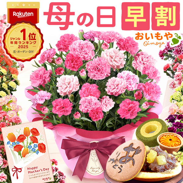 \本日18時に値段上がります/ 母の日 プレゼント 早割 花 生花 2026 カーネーション 鉢植え 5号 バンビーノ 希少 鉢花 どら焼き おしゃれ お花 ギフト 送料無料 スイーツ お菓子 和菓子 メッセージカード付き 人気 花とスイーツ 楽天ランキング1位 ギフトセット おいもや