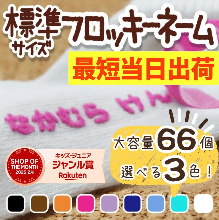 🎯 アイロンでポンッ!洗濯に強くて剥がれにくい、3色選べる66個入りの大容量お名前フロッキー