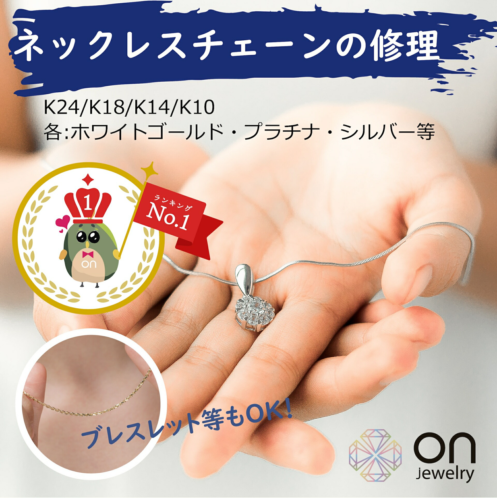チェーン切れや指輪の変形、留め具の故障など、どんなトラブルでもお任せください。