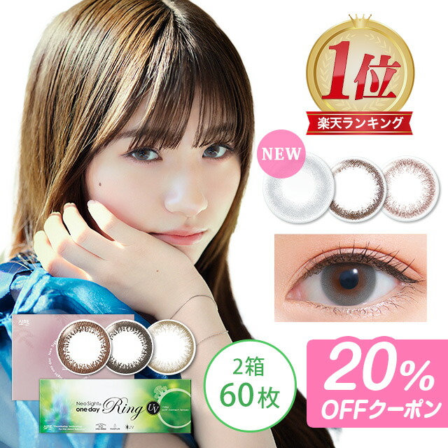 【20%OFFクーポン】新色 カラコン ワンデー ネオサイトワンデーリングUV (2箱60枚)【送料無料】【メール(ポスト投函)便選択で1配送につきパック1枚】 カラコン ワンデー 30枚入 度あり カラーコンタクト コンタクトレンズ 小さめ 小盛り UV ブラウン グレー ∀