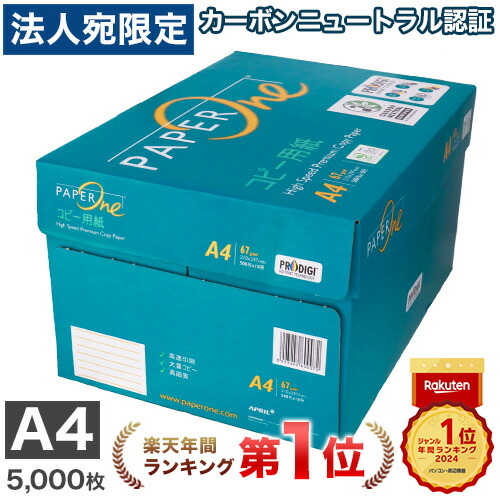 【マラソン限定エントリーでポイント5倍】コピー用紙 A4 5000枚(500枚×10冊)ペーパーワン(PAPER ONE) 高白色 カーボンニュートラル プロデジ高品質 用紙 OA用紙 印刷用紙 無地《商品到着後、レビュー書いて次回使えるクーポンプレゼント》『送料無料(一部地域除く)』