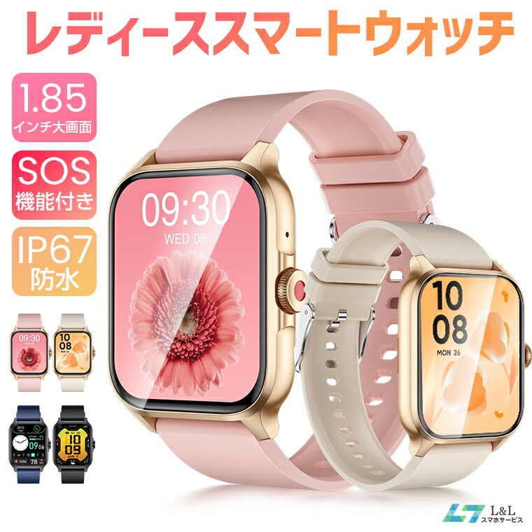 ★最新版 QX15 多機能スマートウォッチ 24時間健康管理 Bluetooth5.2 SOS機能 心拍数 1.85インチ大画面 レディース スマートウォッチ IP67防水 座りがち注意 歩数計 カロリー 活動量計 着信通知 睡眠検測 天気予報 iPhone Android対応