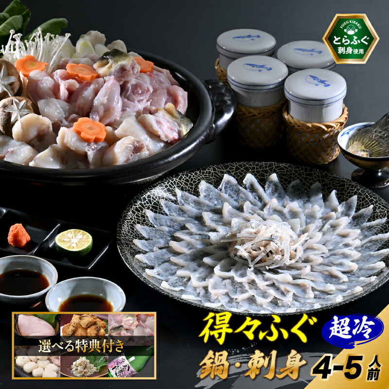 【今だけ大特価】【 楽天グルメ大賞 / 月間優良ショップ 他多数受賞】とらふぐ 刺身 ふぐ鍋 選べる特典「特典付!得々ふぐ鍋・刺身セット4-5人前/超冷」 山口ふぐ本舗きらく ふぐ刺し ふぐちり ふぐ皮 送料無料 贈り物 ギフト 歳暮 正月 冷凍