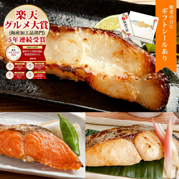 遅れてごめんね 敬老の日 【5年連続受賞 楽天グルメ大賞】 【天然高級魚 銀だら入り西京漬・粕漬セット 5~8切入】ギフト プレゼント 送料無料 天然魚 漬魚 漬け魚 贈り物 お祝 内祝 お礼 高級感 年配 高齢 祖父 祖母 おじいちゃん おばあちゃん 冷凍 日持ち