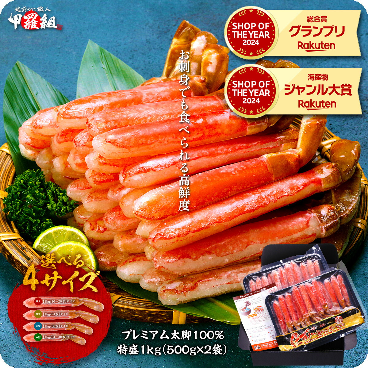 先着枚数限定200円OFFクーポンあり!送料無料8,790円〜 【お刺身OK】生ずわいがにプレミアム太脚ポーション1kg(16〜40本)※4サイズから選択OK!⇒【中型サイズ】【大型サイズ】【特大サイズ】【超特大サイズ】