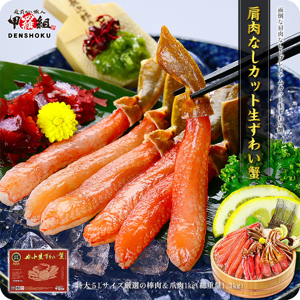 🎯 面倒な殻むき不要!解凍するだけで「とろけるカニ刺し」が楽しめる超特大生ずわい蟹