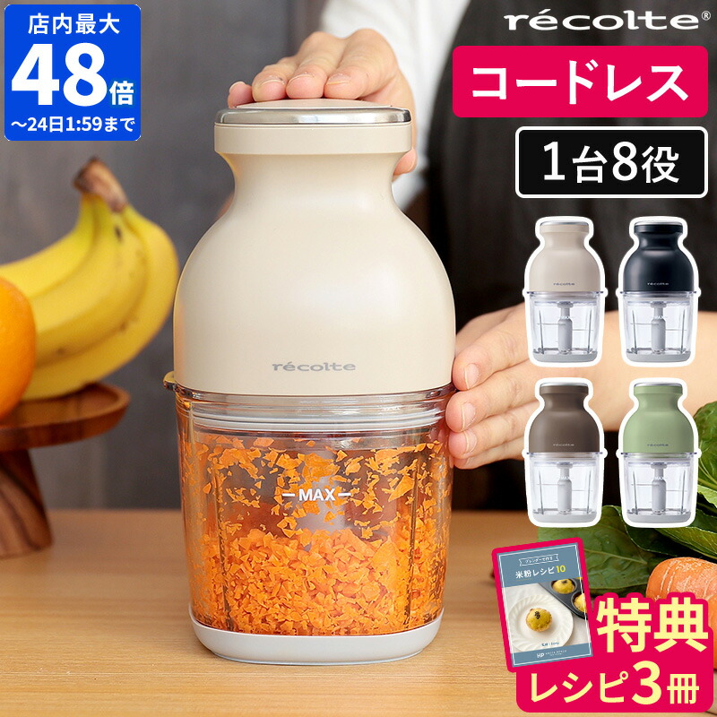 ◆楽天1位◆【当店限定豪華6大特典】フードプロセッサー レコルト コードレス カプセルカッターボンヌ ブレンダー ミキサー ジェラート recolte 電動 大根おろし 氷も砕ける 小型 フードカッター 離乳食 スムージー 充電式 みじん切り 泡立て ガラス容器 500ml ギフト RCP-7