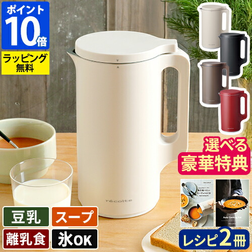 ◆楽天1位◆スープメーカー【豪華選べる特典】自動調理ポット【30レシピ付】レコルト recolte 自動調理ポット ブレンダー ミキサー 氷も砕ける フードプロセッサー スープ 豆乳 600ml 豆乳メーカー スムージーメーカー ポタージュ 離乳食 RSY-2【ポイント10倍】