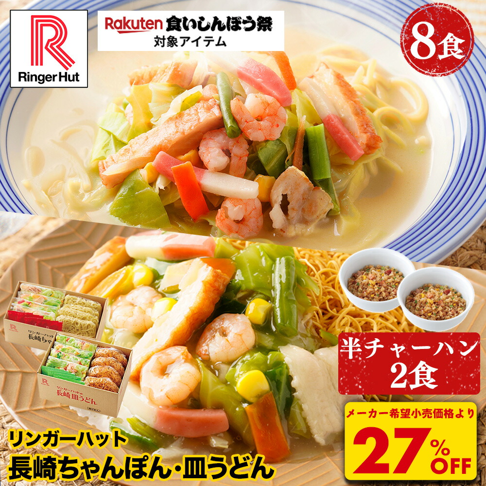 S【緊急500円OFF食いしんぼう祭クーポン!】【期間限定!半チャーハン2食付き!衝撃の27%OFF!5,200→3,760円!】リンガーハット 長崎ちゃんぽん4食&長崎皿うどん4食セット 長崎ちゃんぽん 長崎皿うどん 皿うどん ちゃんぽん 冷凍食品 送料無料 具付き 冷凍 ちゃんぽん