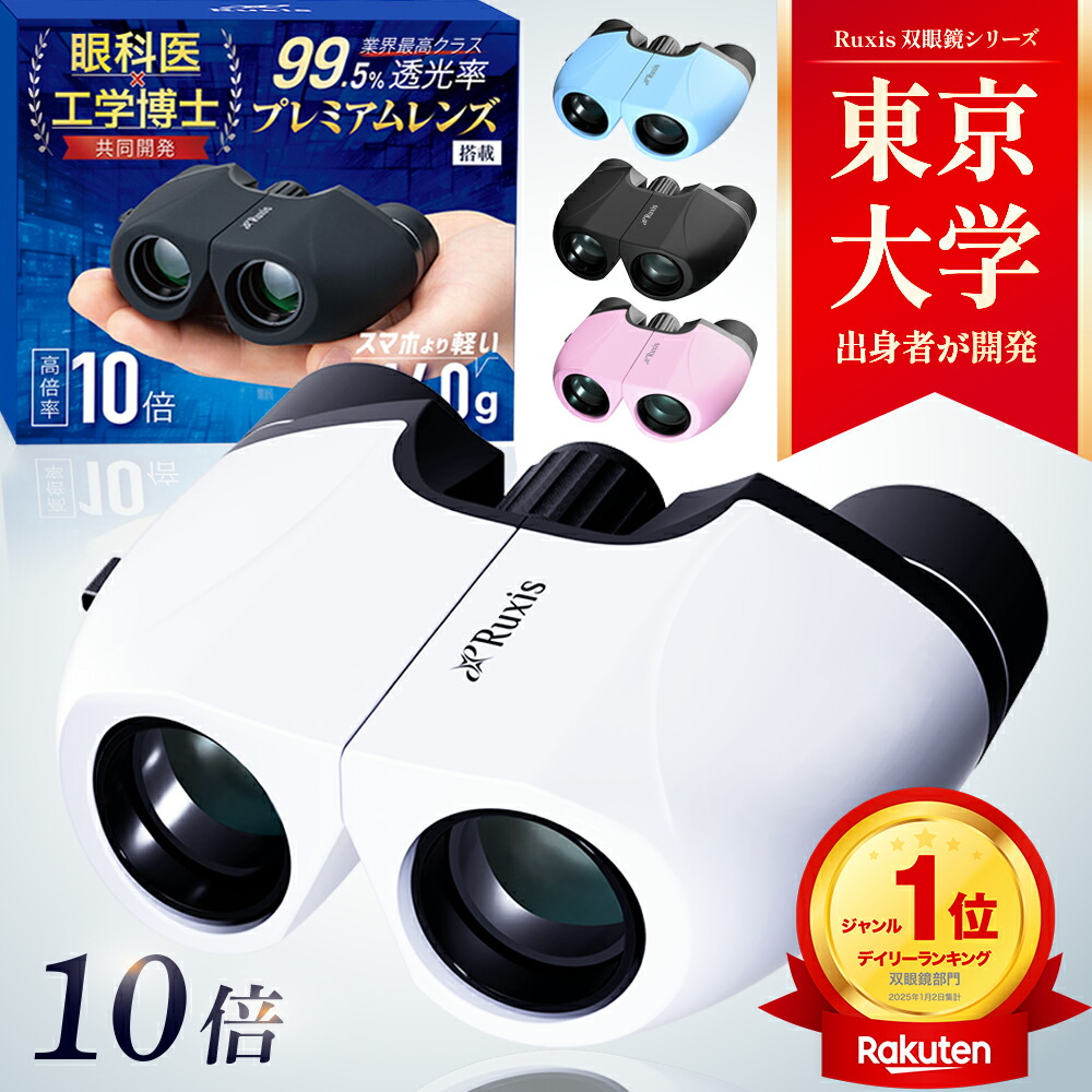 【眼科医×東大卒の工学博士が開発】 双眼鏡 10倍 【TVで話題!最先端光学レンズ搭載】 コンサート オペラグラス ライブ 超軽量 140g 高倍率 スポーツ観戦 コンサート用 ライブ用 推し活 ドーム 野球観戦 IPX3防水 メガネ対応 軽い ルクシス Ruxis 【日本メーカー保証1年】