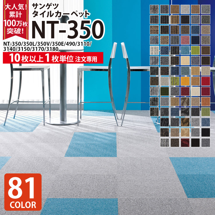 【10枚以上1枚単位】サンゲツ タイルカーペット 50×50 NT-350 NT350 全81色 激安 50cm角 正方形 制電 耐候 ペット 無地 ライン チェック リーフ 床材 パネルカーペット