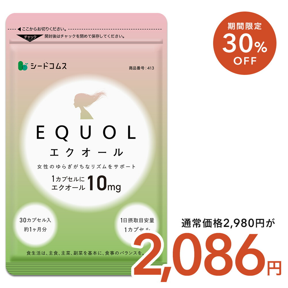 【30%OFFクーポン配布★上限後も20%OFFあり★】エクオール 1ヶ月分 ≪1カプセル10mg配合≫ 送料無料 シードコムス サプリメント サプリ 大豆イソフラボン 美容 健康 ラクトビオン酸 プラセンタ アスタキサンチン GABA 女性 の悩み