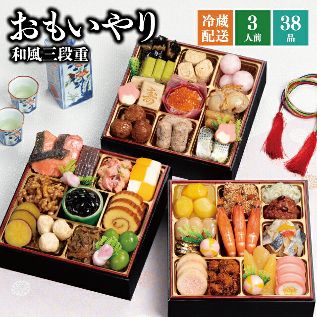 \早割価格★11/30(日)まで/おせち 2026 予約 千賀屋謹製 『おもいやり』 和風 3段重 38品 3人前 6.5寸 送料無料 お節 千賀屋 御節 おせち料理 2025 お正月 御節料理 三段重