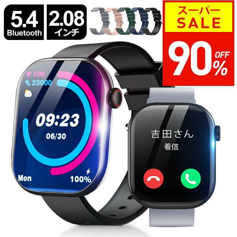 楽天1位 【90%OFF!スーパーSALE限定】 2.08インチ超大画面&Bluetooth5.4 最新型 スマートウォッチ 通話機能 レディース メンズ 腕時計 健康管理 心拍数 24時間測定 ランニング ランニングウォッチ iPhone対応 android対応 ギフト 母の日 新生活