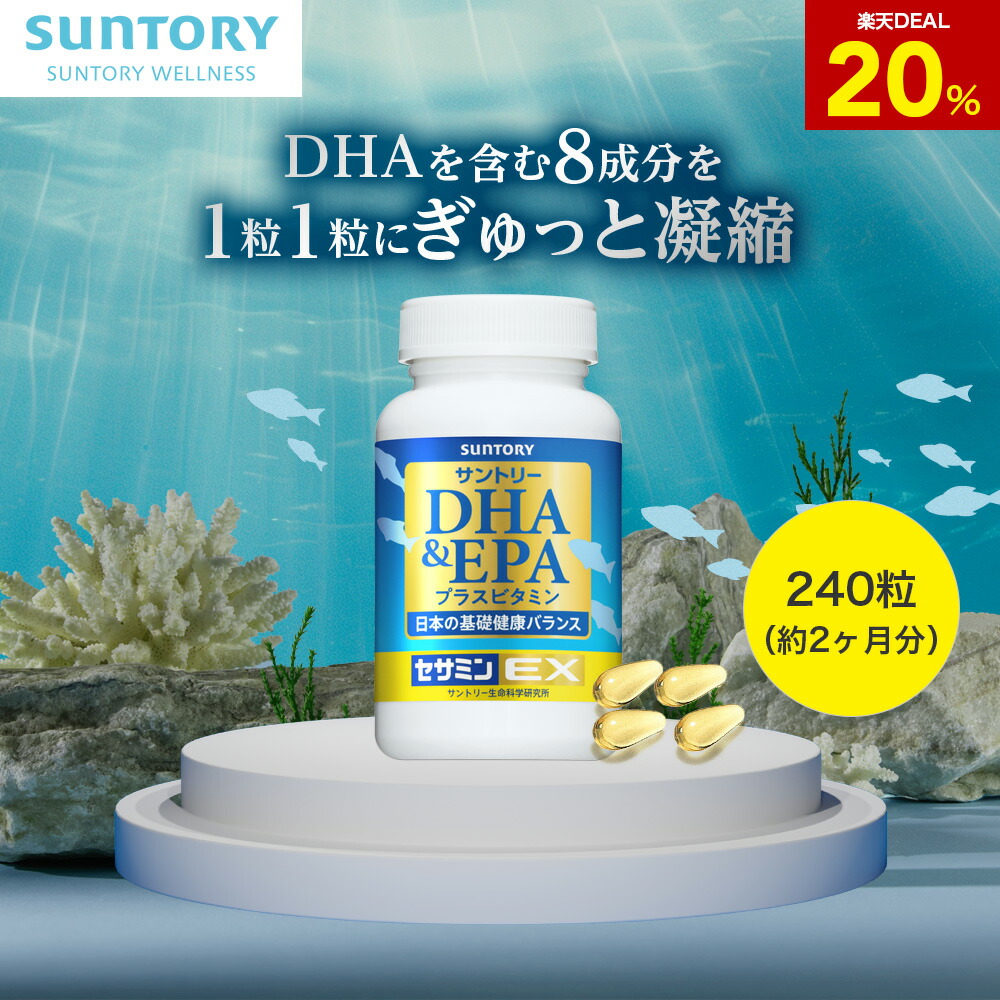 【20%ポイントバック10月09日09:59まで】DHA&EPA+セサミンEX オメガ脂肪酸 240粒(約2ヶ月分) サントリー公式 DHA EPA オリザプラス セサミン トコトリエノール ビタミンD ビタミンE サプリメント オメガ3 サプリ