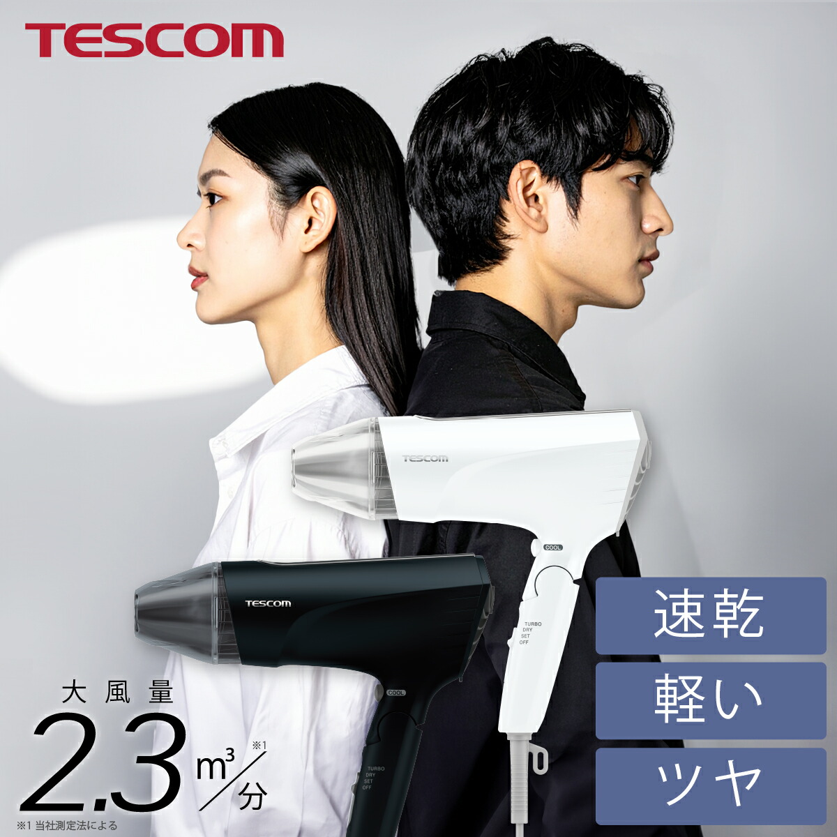 【100円クーポン有】 テスコム 公式 ドライヤー 大風量 速乾 軽い 軽量 ツヤ マイナスイオン 時短 人気 TID2400B プロテクトイオン 艶 ランキング おすすめ 人気 1年保証 1300W TESCOM 黒 ブラック 白 ホワイト ヘアドライヤー ヘアアイロン 早く