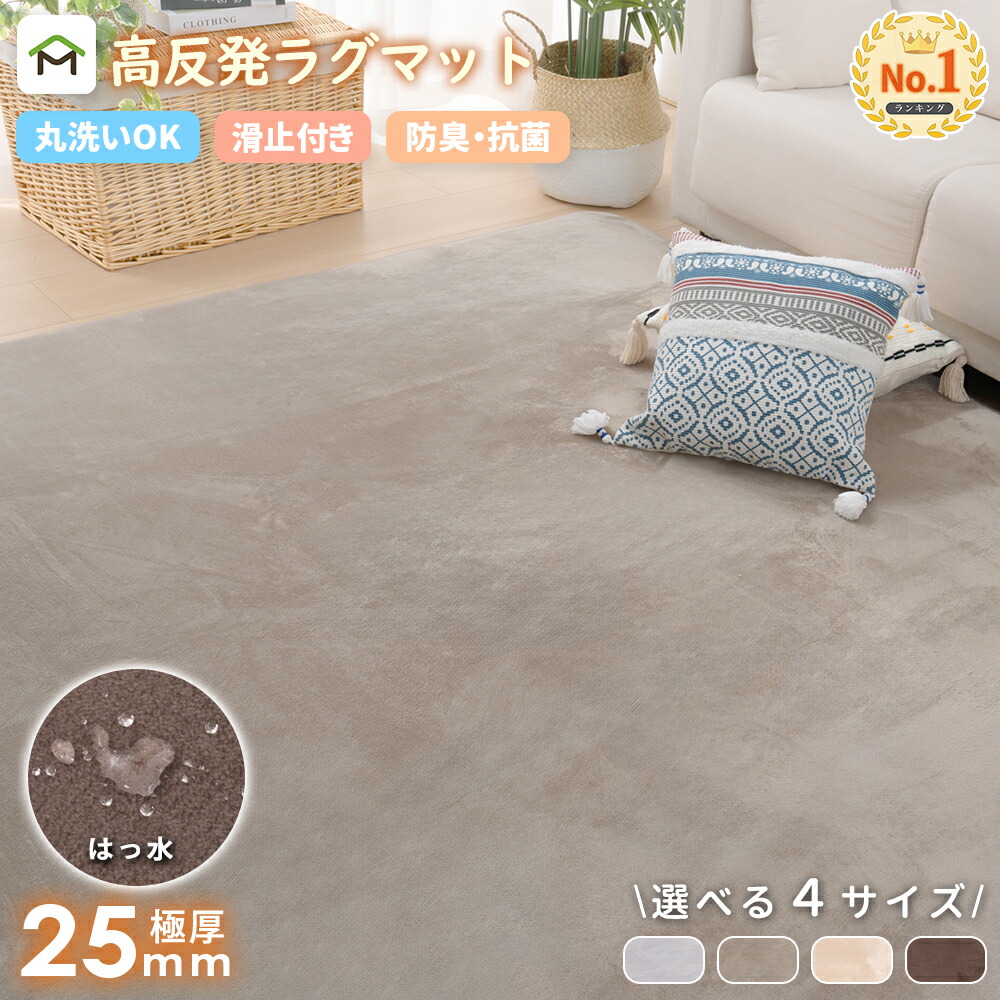【クーポン10%引 25日まで】ラグマット 厚手 極厚25mm 2畳 3畳 洗える フランネル 防音 滑り止め付 床暖房 ホットカーペット対応 こたつ 対応 高反発ラグ ラグマット 正方形 マット カーペット 絨毯 北欧 オールシーズン 送料無料