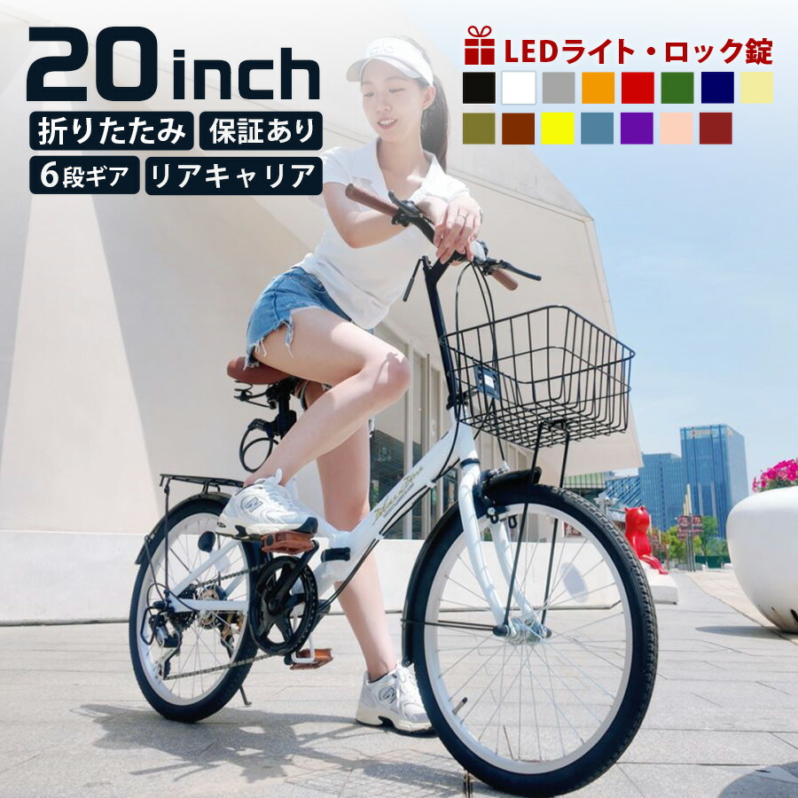 【2025New★荷台付きへリニューアル!】 THREE STONE 折りたたみ自転車 荷台付き 20インチ 自転車 シマノ 6段ギア カゴ LEDライト ロック錠 プレゼント メーカー保証 AJ-08