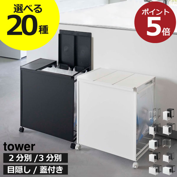【特典2個付き】【全20種】ゴミ箱 45リットル 2分別ゴミ箱 3分別 おしゃれ ペットボトル キャスター付き ダストボックス ふた付き 30L 45l 30リットル キッチン ゴミ袋ホルダー 目隠し 大容量 蓋付きゴミ箱 ゴミ袋スタンド( 山崎実業 分別ダストワゴン タワー tower )
