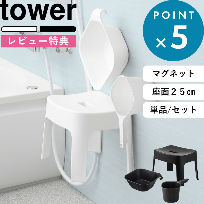 ブラックフライデー/ 楽天1位 《 山崎実業 マグネット風呂イス タワー SH25 桶セット or 単品 》 tower 高さ25cm 湯桶 手おけ マグネットバスチェア マグネット風呂いす 風呂椅子 お風呂いす 洗面器 ボウル 浮かせる 収納 洗いやすい 公式 白 黒 6925 6926 5378 5379