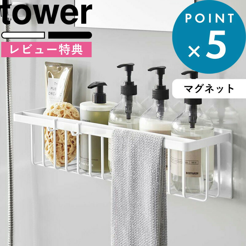 レビュー特典! 楽天1位! 《 山崎実業 マグネットバスルームバスケット タワー ワイド 》 tower お風呂収納 浴室収納 お風呂バスケット ディスペンサーラック バスルームラック かご 浮かせる おもちゃバスケット シャンプーボトル おしゃれ 公式 白 黒 3769 3770