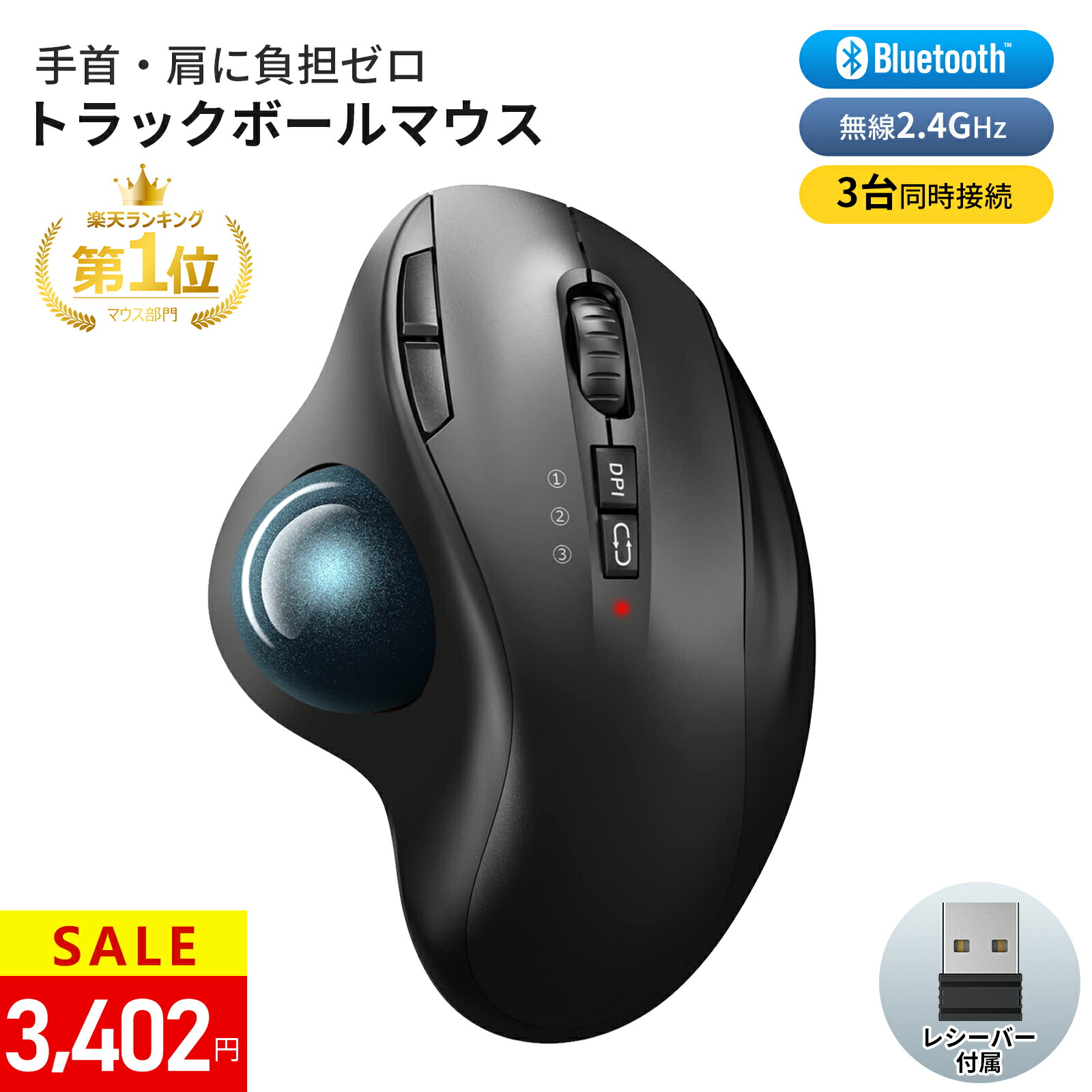 \SS限定★83%OFFで3,402円/【楽天1位】トラックボールマウス マウス ワイヤレス【Bluetooth&2.4GHz USBレシーバー】マウス トラックボール 3台同時接続 無線 ワイヤレスマウス 親指7ボタン 静音ボタン 戻る/進むボタン 5段階DPI Windows/Mac/Android 自宅オフィス